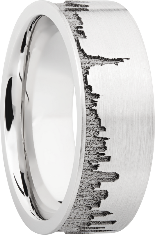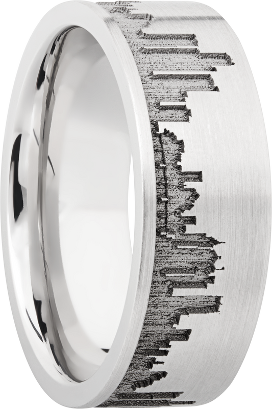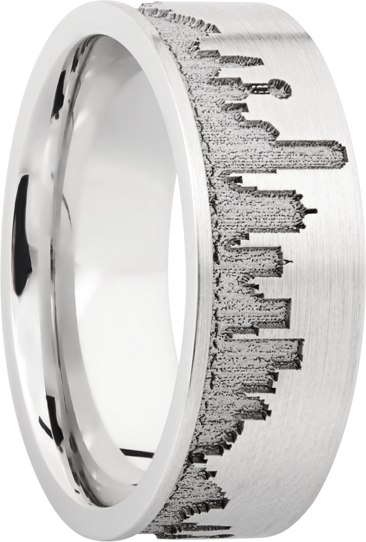 Cobalt chrome 8mm flat band with laser-carved New York skyline