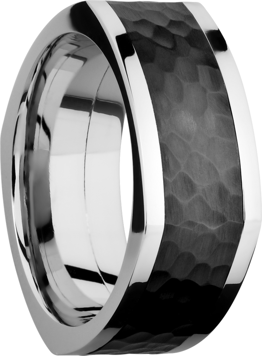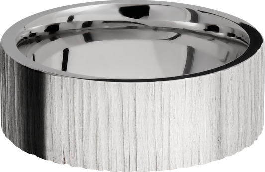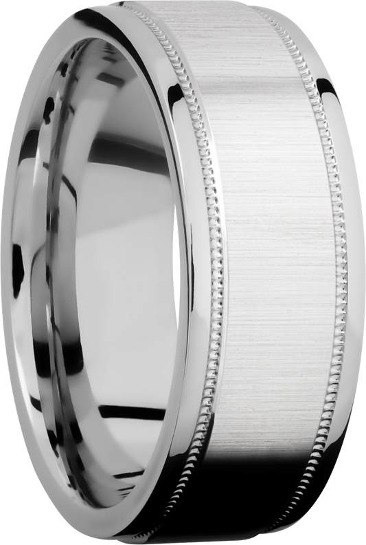 Cobalt chrome 8mm flat band with grooved edges and reverse milgrain detail