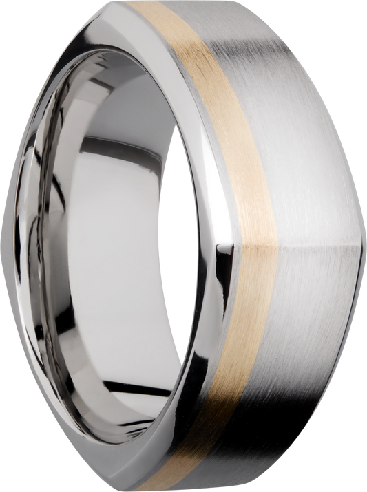 Cobalt chrome 9mm square band with an off center inlay of 14K yellow gold