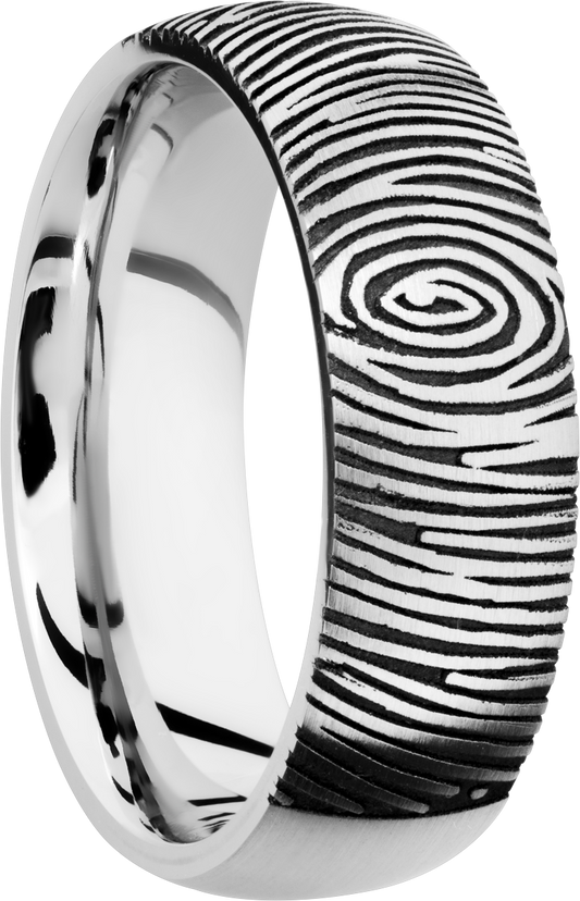 Cobalt chrome 7mm domed band with laser-carved fingerprint