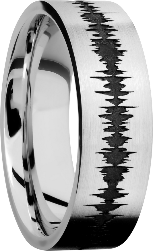 Cobalt chrome 7mm flat band with a laser-carved soundwave
