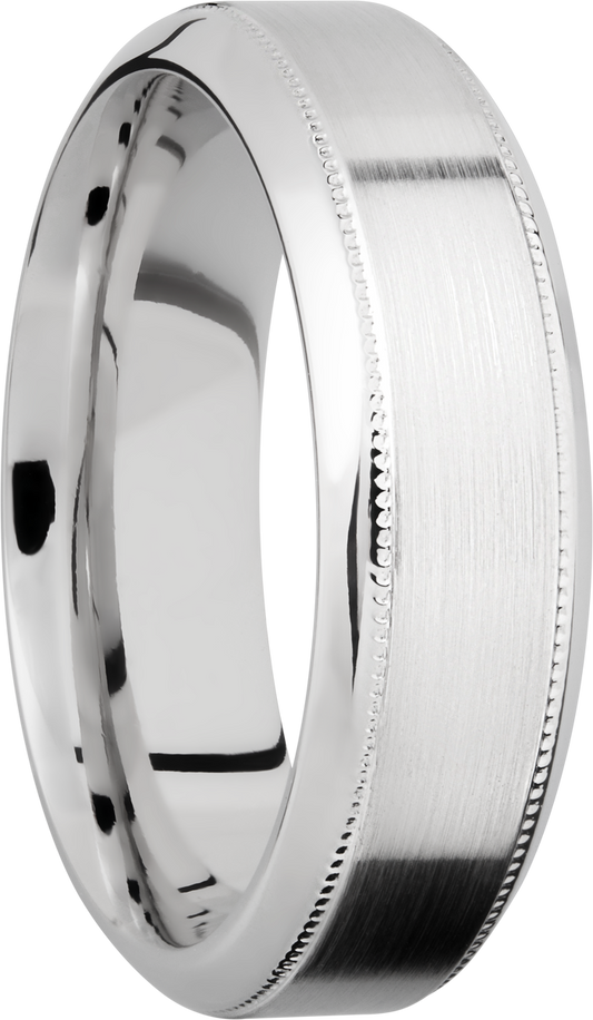 Cobalt chrome 6mm Domed Band with Rounded Edges, Milgrain, and 1mm 14KR