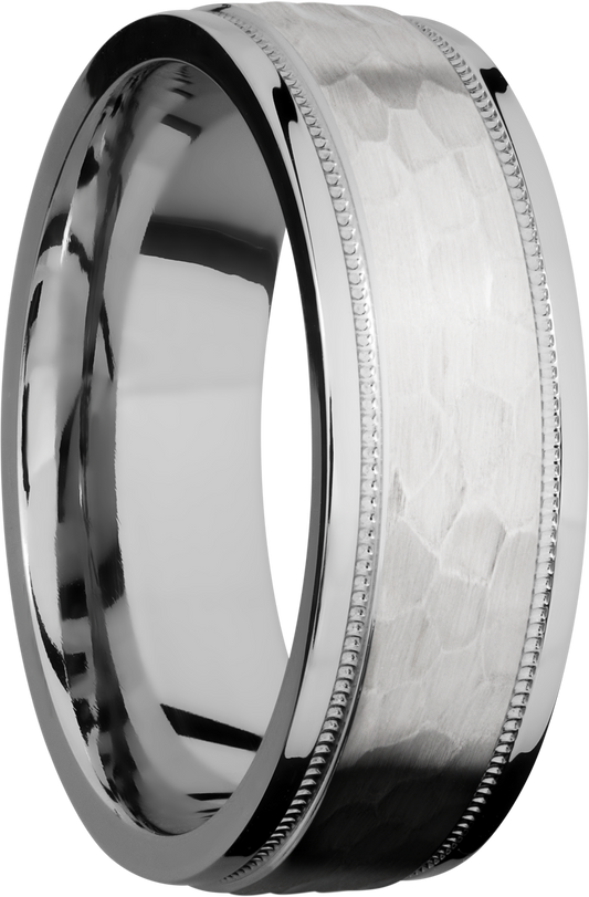 Cobalt chrome 7.5mm flat band with grooved edges and reverse milgrain detail