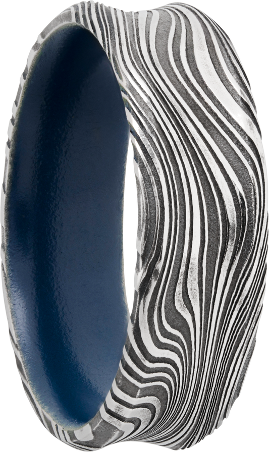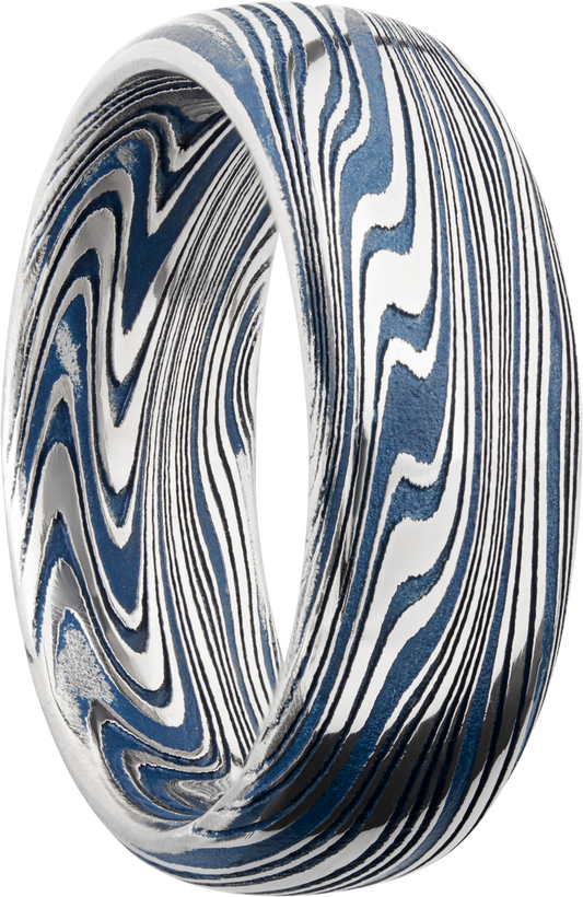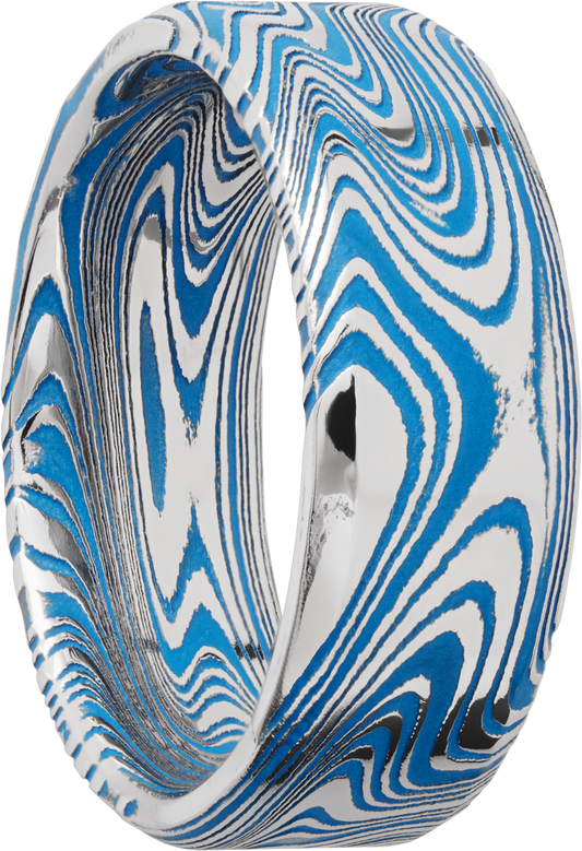 Marble Damascus steel 8mm domed band with Ridgeway Blue Cerakote in the recessed pattern