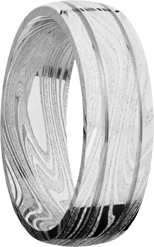 Handmade 7mm marble Damascus steel domed band with 2, .5mm grooves