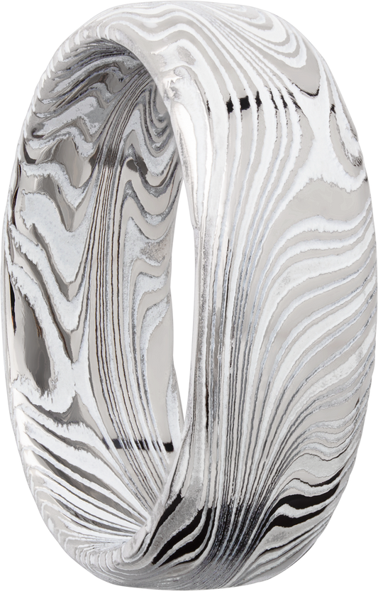 Marble Damascus steel 8mm domed band with White Cerakote in the recessed pattern