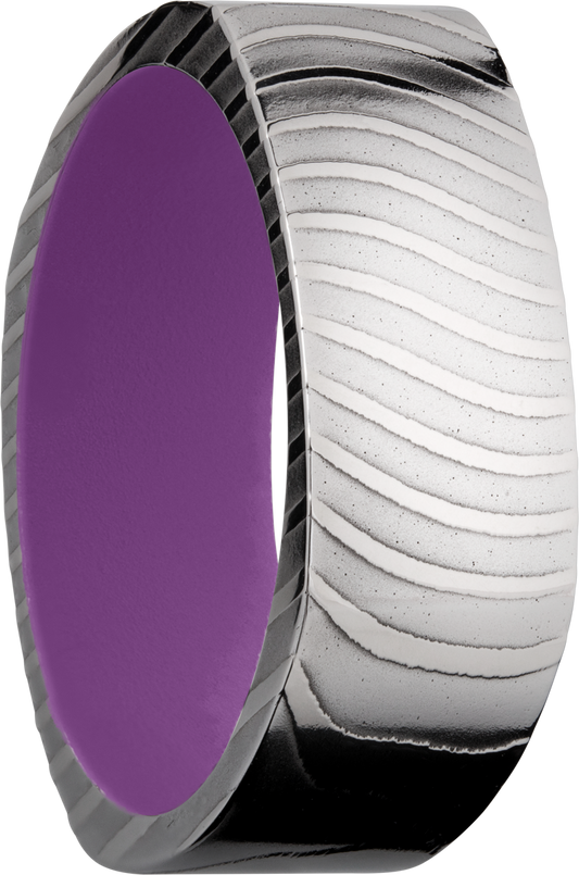 Tiger Damascus steel flat, square 8mm band with a Wild Purple Cerakote sleeve