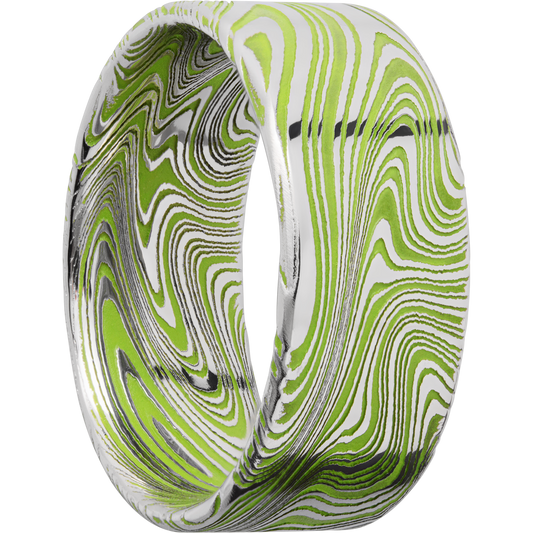 Regular price $882.00Regular priceUnit price / perSale price $882.00Marble Damascus steel 9mm flat band with slightly rounded edges and Zombie Green Cerakote in the recessed pattern -