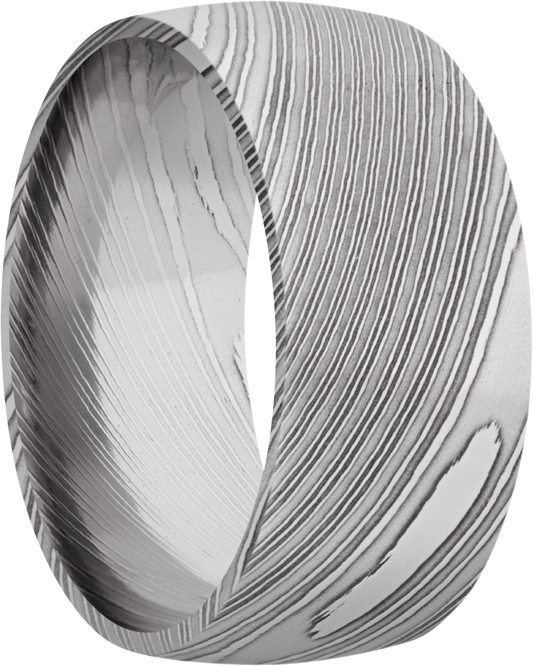 Handmade 10mm Damascus steel domed band with beveled edges