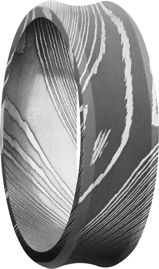 Handmade 7mm Damascus steel beveled band with a concave center