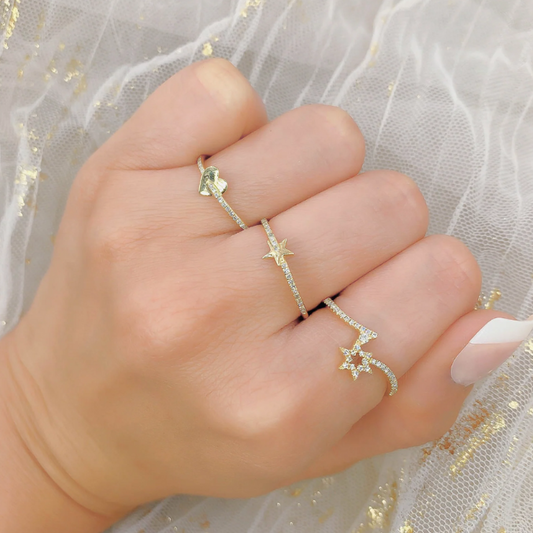 Regular price $360.00Regular priceUnit price / perSale price $360.00Discover the magic of 'The Twinkling Cadence' ring, where diamonds take center stage in an elegant dance. This 14K gold beauty, adorned with .06 carats of natural diamonds, captures the essence of a shimmering ballet, lighting up your world with every step. -