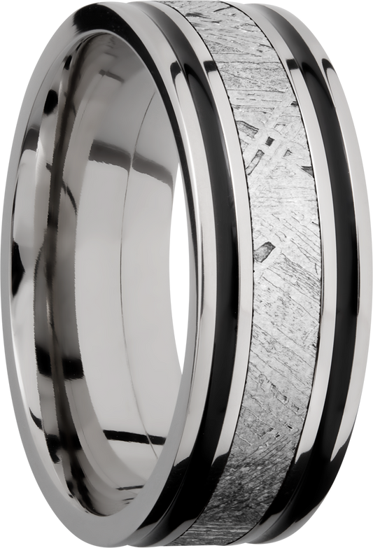 Titanium 8mm flat band with an inlay of authentic Gibeon Meteorite
