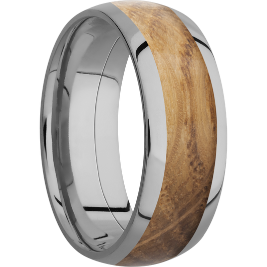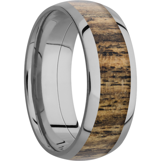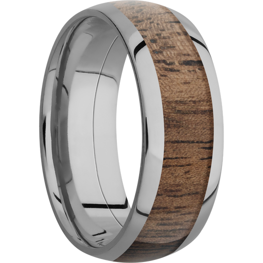 Titanium 8mm domed band with an inlay of Whiskey Barrel hardwood