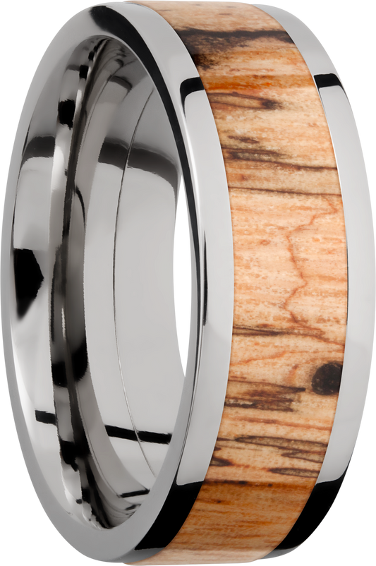 Titanium 8mm flat band with an inlay of Spalted Tamarind hardwood