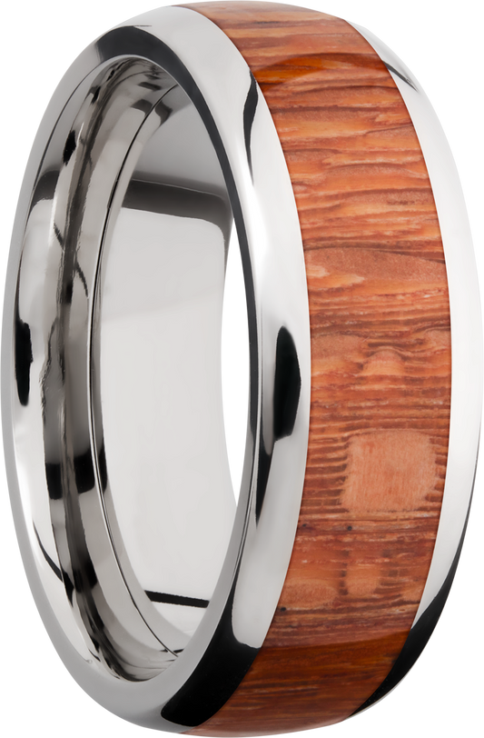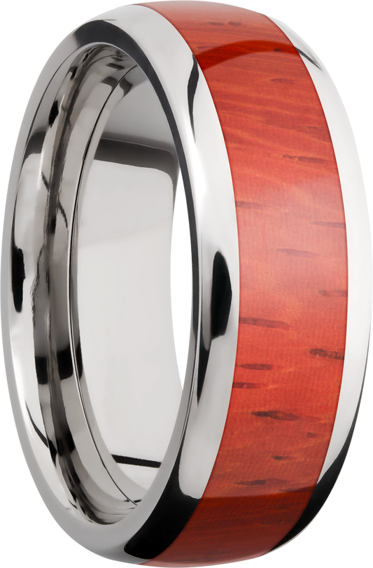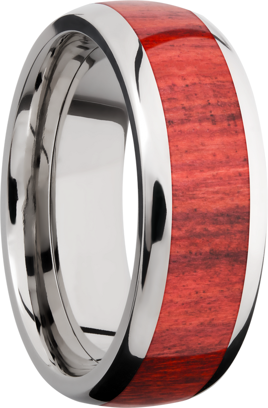 Titanium 8mm domed band with an inlay of Honduras Redheart hardwood