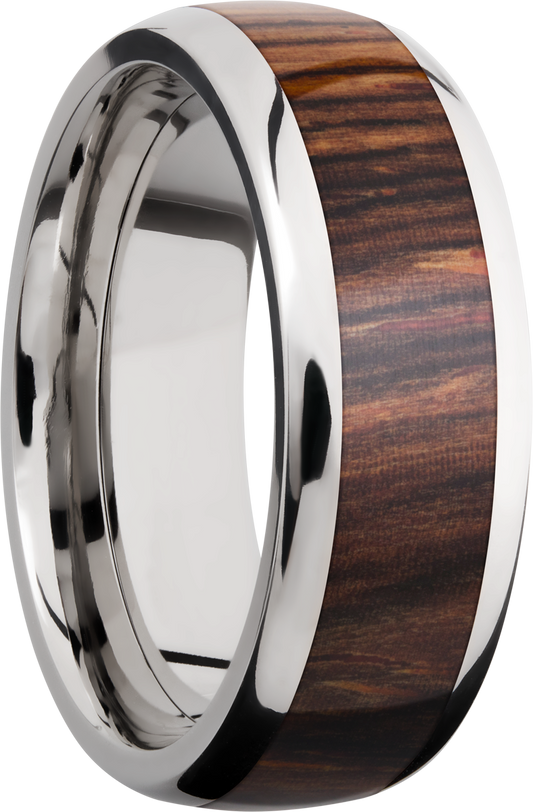 Titanium 8mm domed band with an inlay of Natcoco hardwood