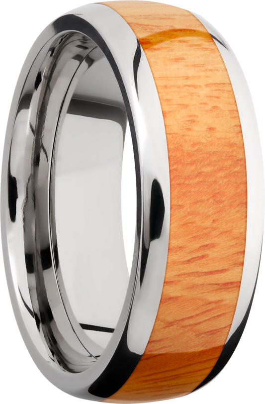 Titanium 8mm domed band with an inlay of Padauk hardwood