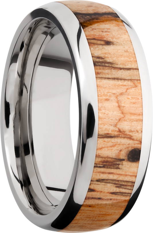 Titanium 8mm domed band with an inlay of Maple Burl hardwood