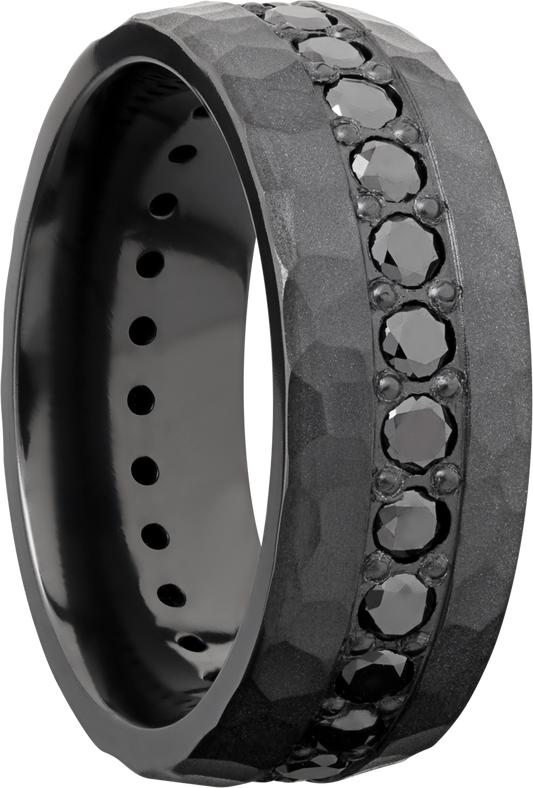 Zirconium 8mm domed band with .06ct bead-set eternity black diamonds
