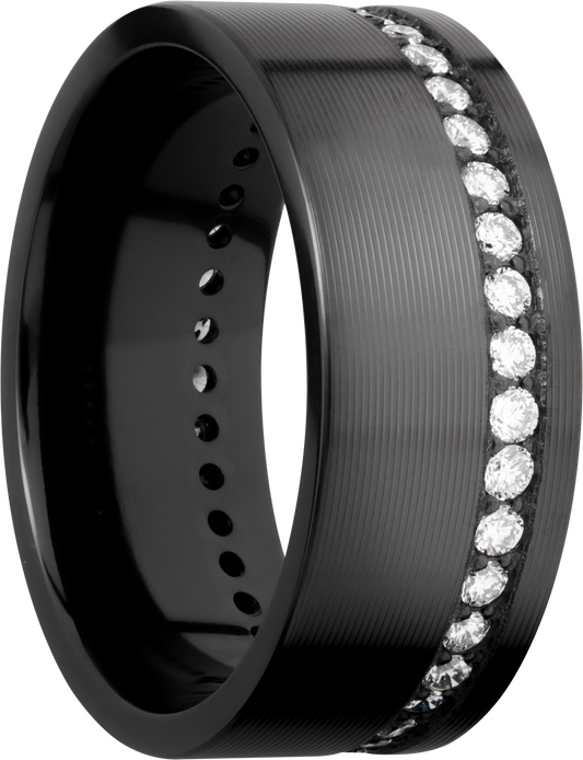 Zirconium 9mm flat band with off-centered bead-set eternity .02ct diamonds