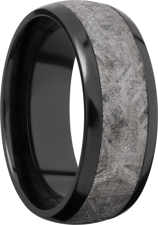 Zirconium 8mm domed band with an inlay of authentic Gibeon Meteorite