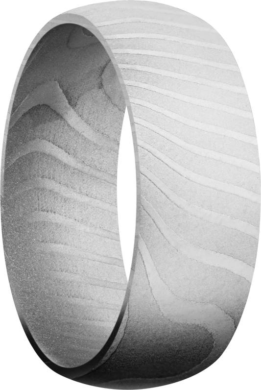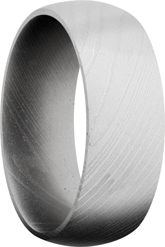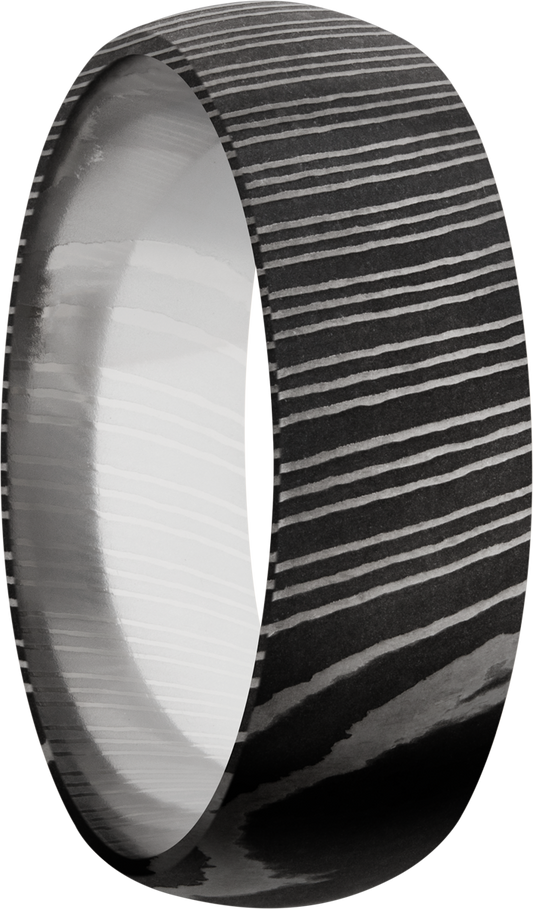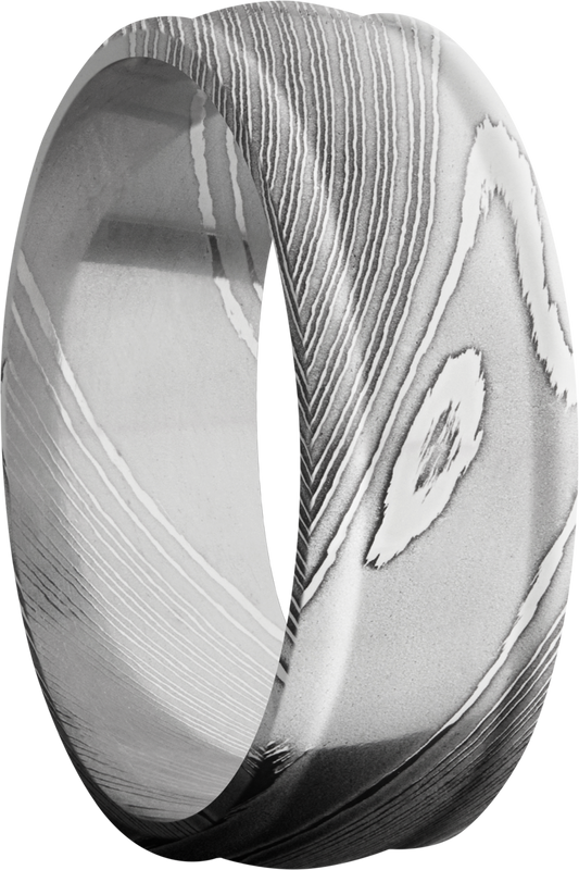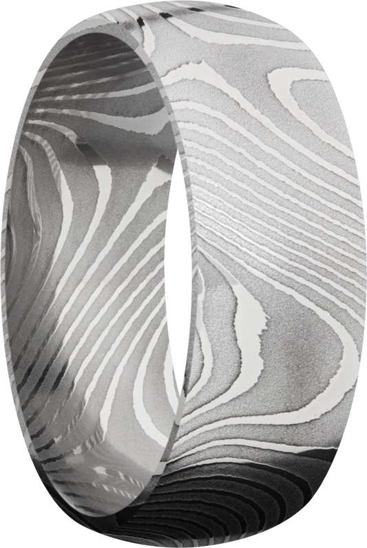 Handmade 8mm Damascus steel band with a domed center and round edges
