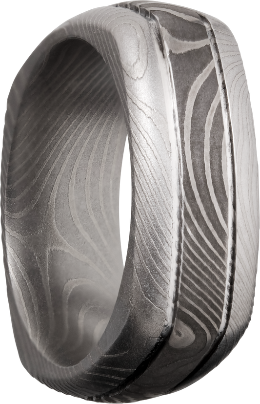 Handmade 8mm flattwist Damascus steel square domed band with 2, .5mm grooves