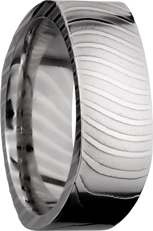 Handmade 8mm flattwist Damascus steel band with a concave center and beveled edges