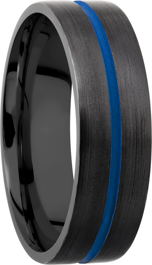 Zirconium 7mm flat band with 1, 1mm blue Cerakote groove