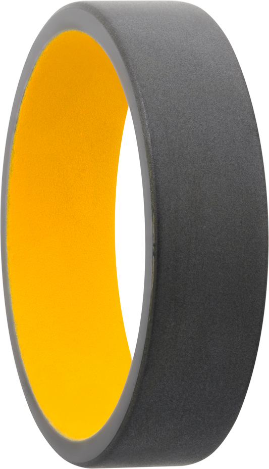 Regular price $501.00Regular priceUnit price / perSale price $501.00Zirconium 6mm flat band with slightly rounded edges and a Dewalt Yellow Cerakote sleeve -