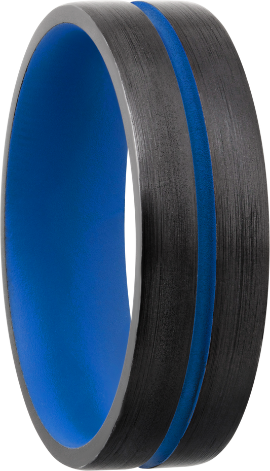 Zirconium 6mm domed band with a 1mm groove featuring Royal Blue Cerakote