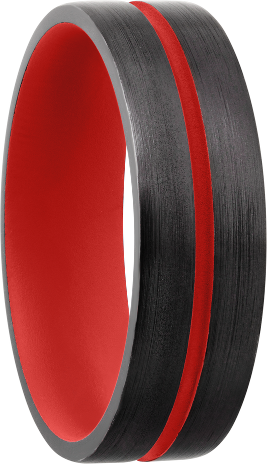 Zirconium 6mm domed band with a 1mm groove featuring red Cerakote