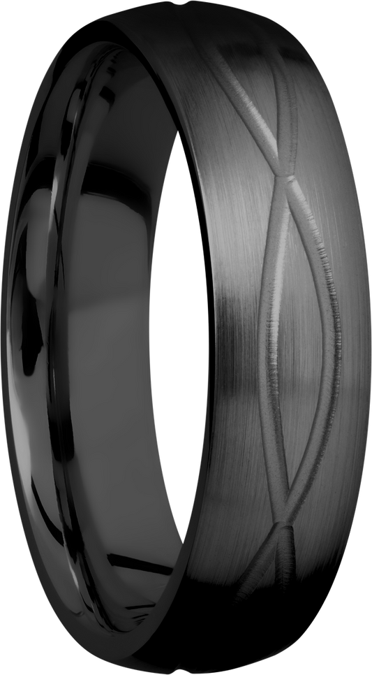 Zirconium 6mm domed band with a laser-carved infinity pattern