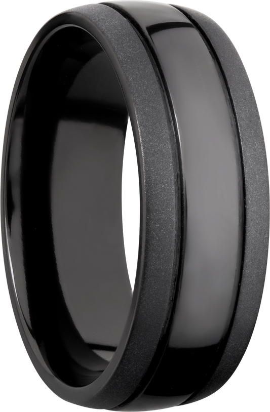 Zirconium 8mm domed band with 2, .5 mm grooves