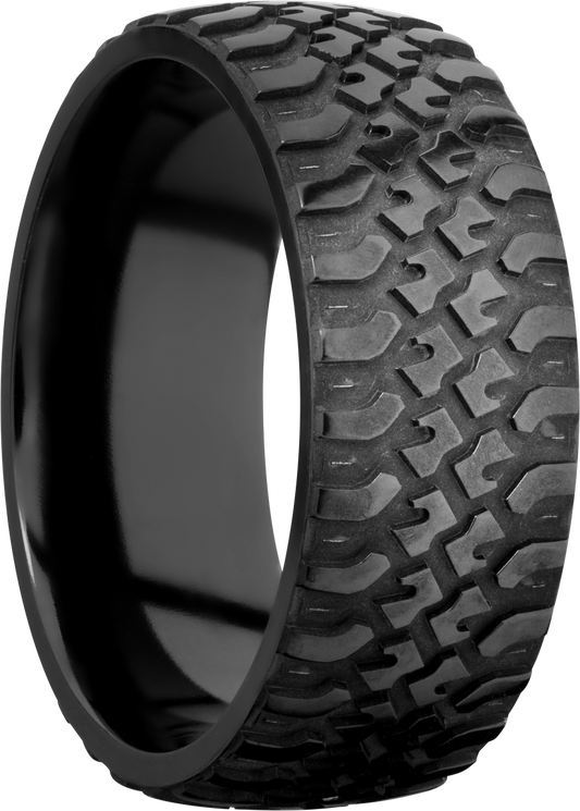 Zirconium 9mm domed band with a laser-carved truck pattern