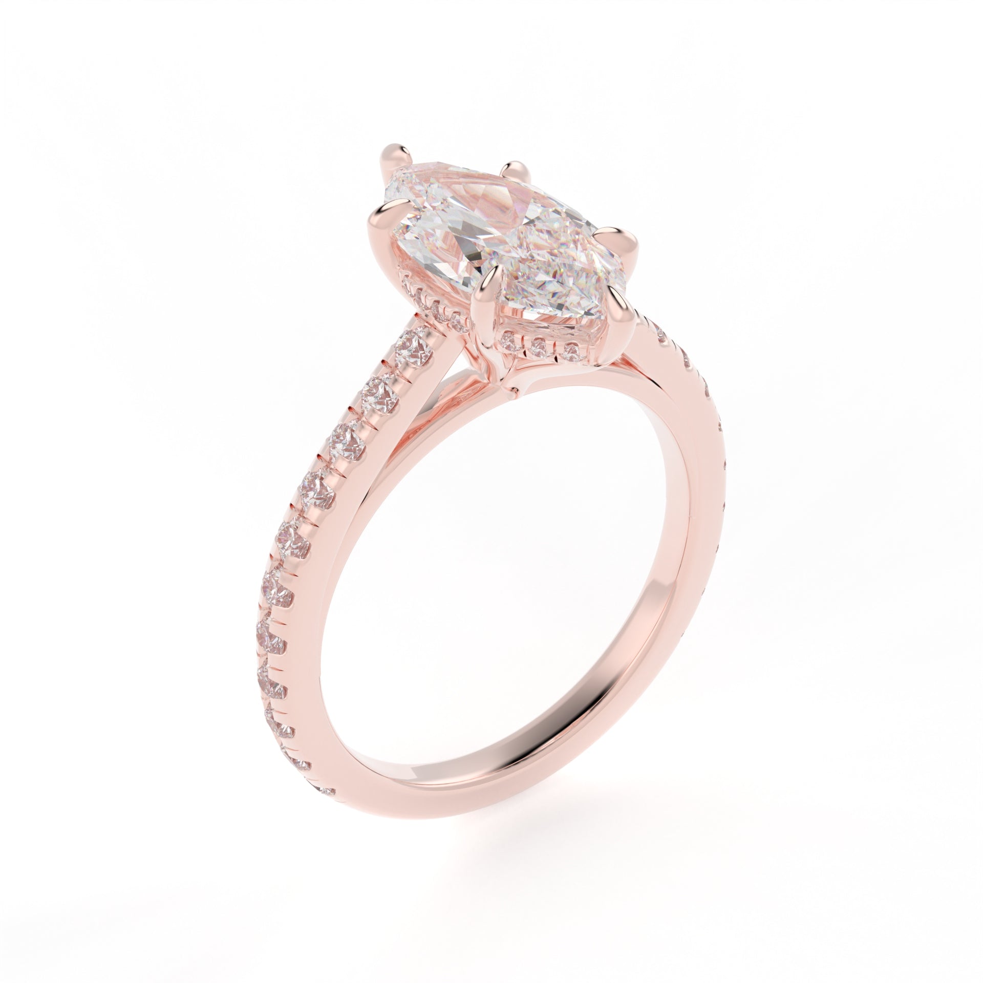 This elegant gold and diamond ring features a hidden halo and sparkling diamonds down the band. Crafted with luxurious materials, this ring exudes sophistication and style. Perfect for any special occasion, it will add a touch of glamour to any outfit. Elevate your jewelry collection with this stunning piece.